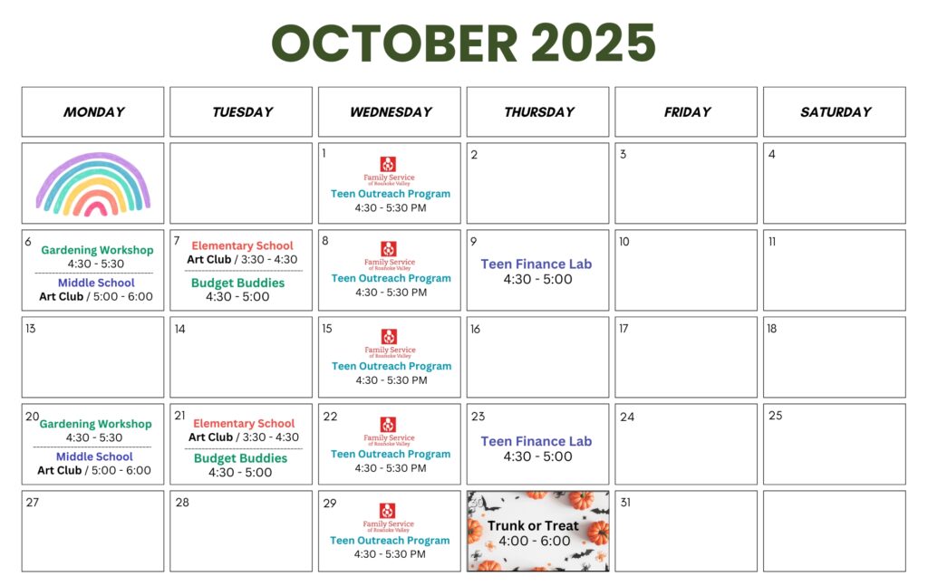 Family Services of Roanoke Valley facilitates both a Positive Actions Group and a Teen Outreach Program (TOP). These programs are designed to help adolescents develop healthy peer relationships and nurture mental wellness through structured discussions, activities, and mentorship.