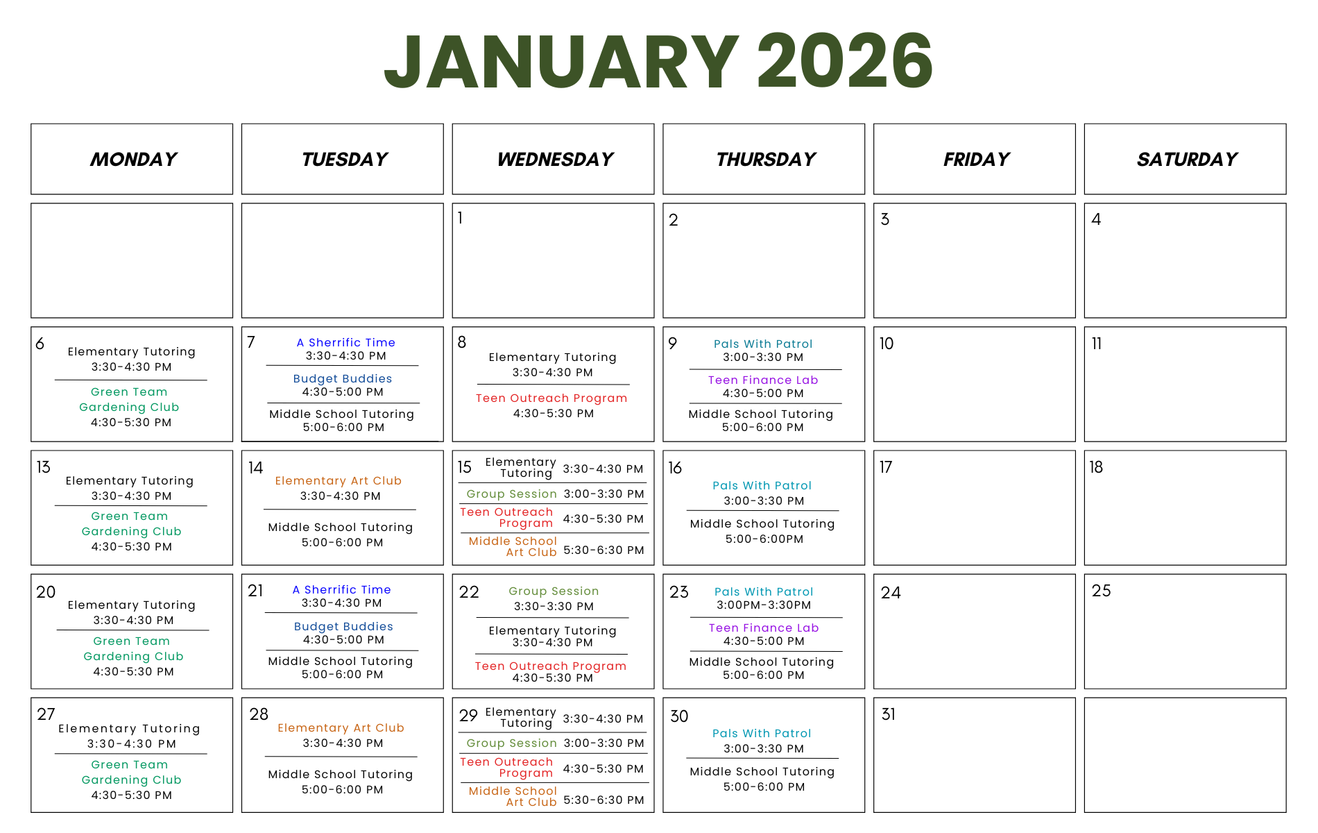 • Taylor’s Tutoring hosts two small after-school tutoring groups for elementary and junior high/high school students. These sessions also offer access to the newly established computer lab at Villages at Lincoln, providing students with hands-on experience using digital learning tools.